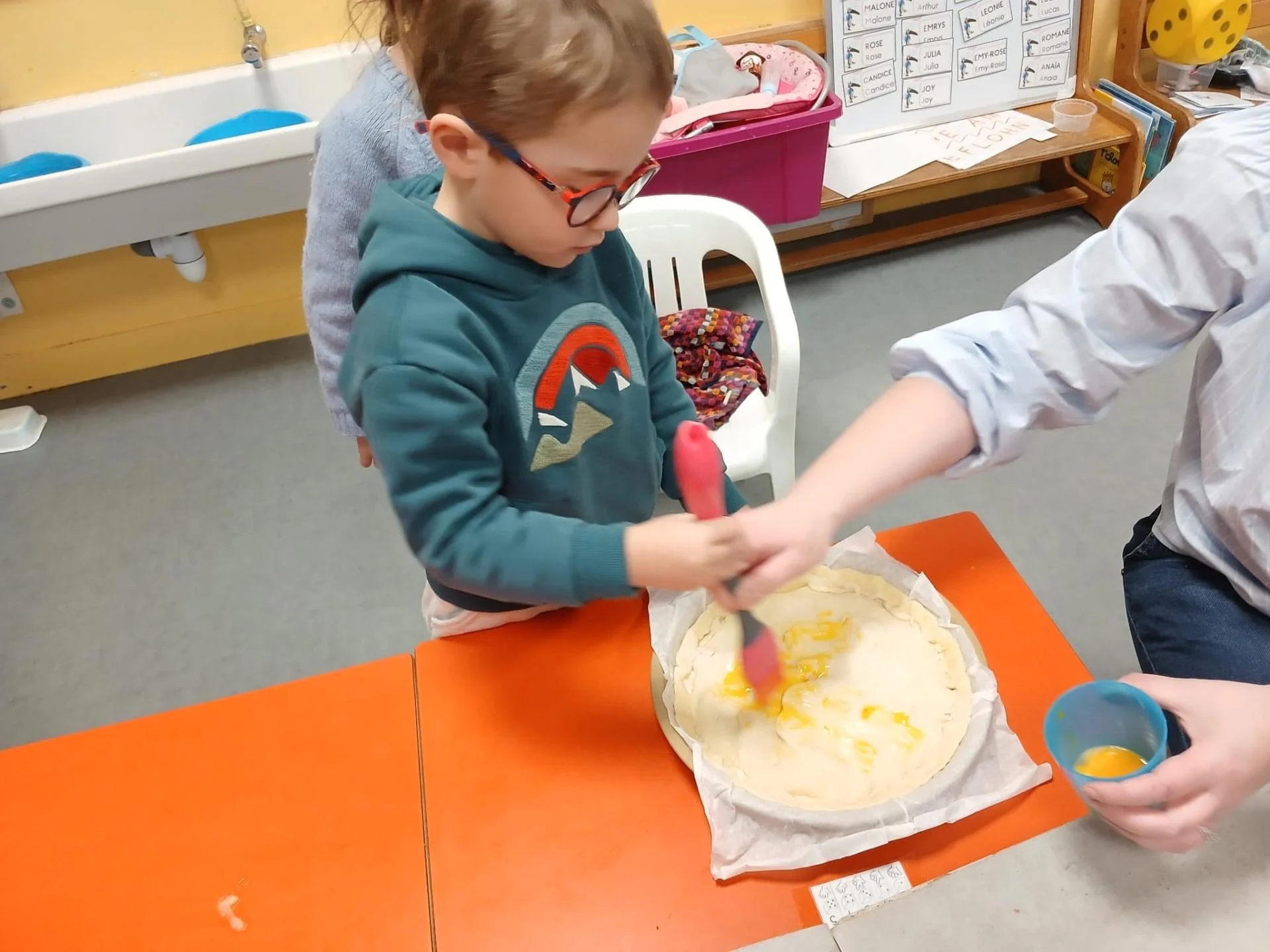 Moment de partage en MS avec la confection de la galette des rois . Les enfants ont beaucoup aimé cuisiner. L après-midi nous avons partagé la galette . Bravo à Lucas qui a eu la fève !